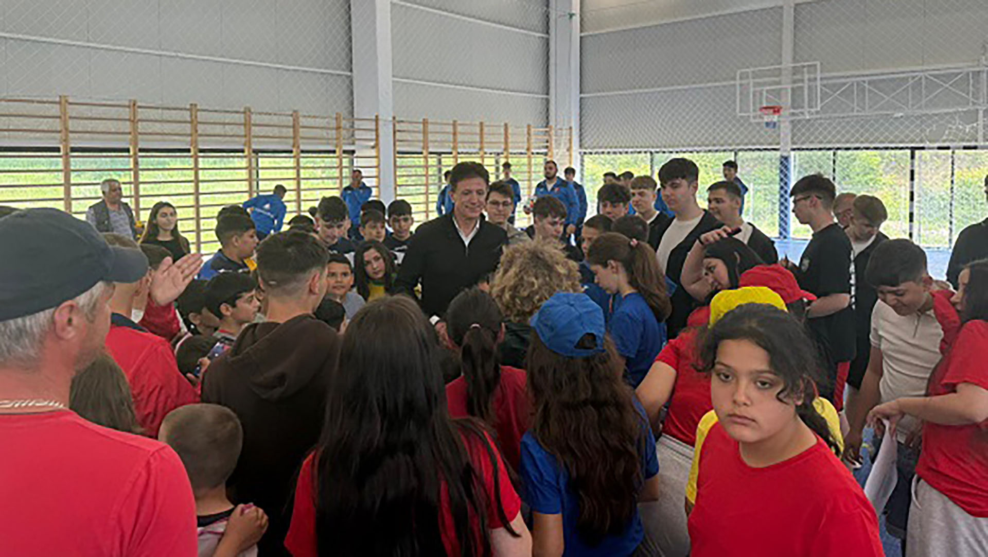 La Grădinari, unde școala se află în proces de reabilitare, Popescu a fost întâmpinat cu pâine și sare de către foștii profesori ai lui Munteanu. Datorită lucrărilor de renovare, evenimentul s-a desfășurat la școala din Greoni, unde sunt relocați elevii. Ulterior, la Socol, în sala de sport a școlii „Sfântul Sava”, Popescu a înmânat cecul și echipamentele sportive, fiind primit cu entuziasm de elevi și cadre didactice.