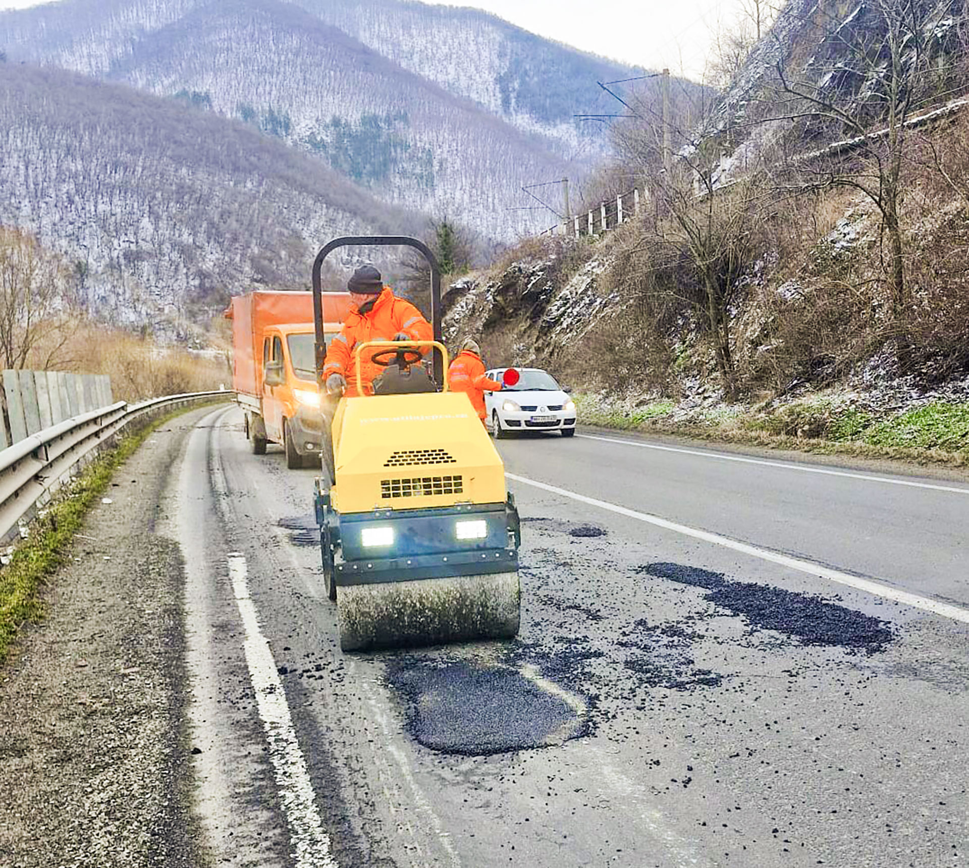 În paralel, pe DN 6, între localitățile Topleț și Caransebeș, se desfășoară lucrări de întreținere curentă, atât prin intermediul echipelor antreprenorului, cât și în regie proprie. Se intervine cu mixtură asfaltică stocabilă, utilizată în special pentru reparații rapide, dar și cu mixtură asfaltică preparată la cald, aplicată în funcție de specificul degradărilor identificate în teren.